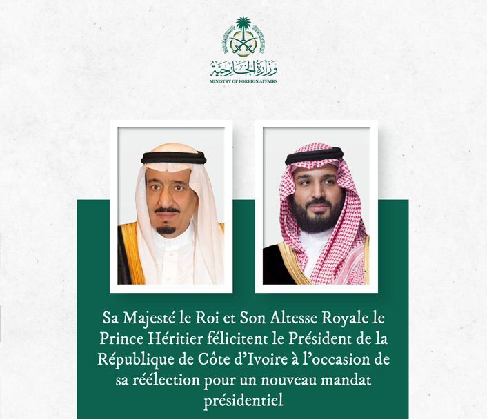 Abidjan, le 4 novembre 2025 — Le Président de la République, Alassane Ouattara, a reçu les félicitations du Serviteur des deux saintes mosquées, Sa Majesté le Roi Salman Bin Abdulaziz Al Saud, ainsi que de Son Altesse Royale le Prince héritier et Premier Ministre, Mohamed Bin Salman Bin Abdulaziz Al Saud, à la suite de sa réélection à la tête de la Côte d’Ivoire.