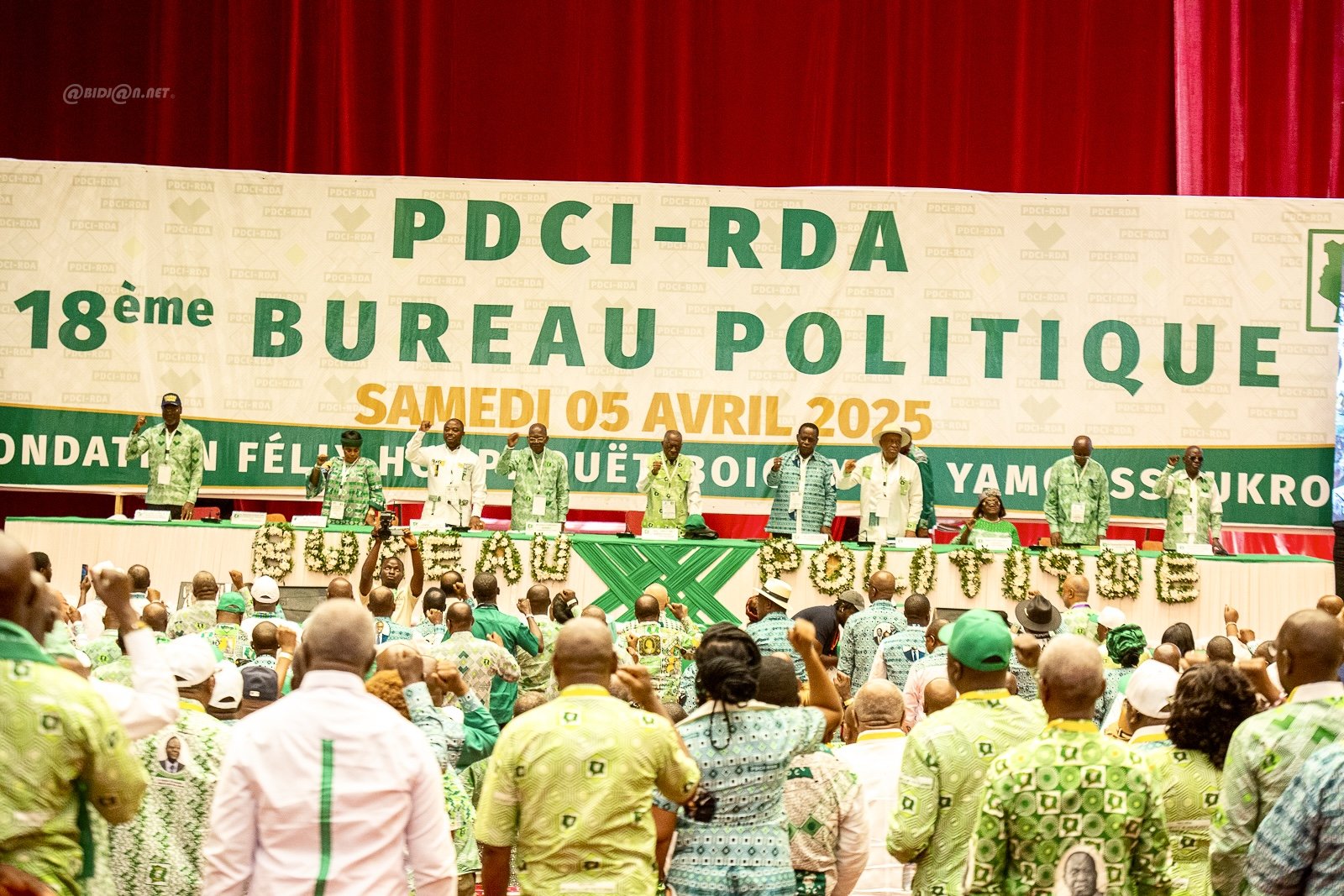 Ce jour, 05 avril 2025, sur convocation du Président Cheick Tidjane THIAM, Président du PDCI-RDA, le Bureau Politique, élargi aux membres du Comité des Sages, a tenu sa 18e Réunion à la Fondation Félix HOUPHOUËT-BOIGNY pour la Recherche de la Paix à Yamoussoukro, de 11 heures 47 minutes à 18 heures.